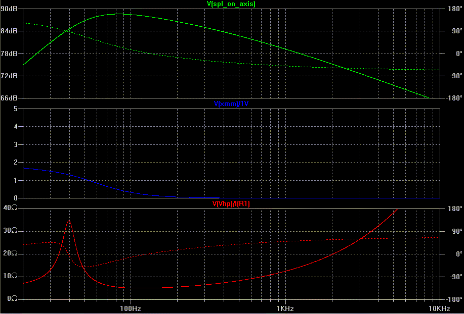 Xmax et SPLmax à une basse fréquence f donnée :