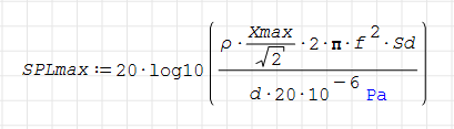 Ci-dessous, il suffit de saisir les Xmax en mm, f en Hz et Sd en cm² du haut-parleur en enceinte close pour prédéterminer le SPLmax en dB pour un rayonnement sur 2π stéradians :