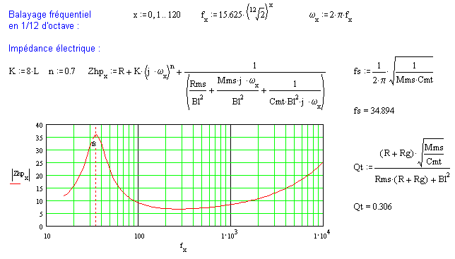 Le logiciel Mathcad 6.0 ici utilisé, permet d'éditer en lien direct variables, équations et graphes. Un outil fort didactique pour accompagner les ouvrages d'électroacoustique. C'est une ancienne version, vers 1995.