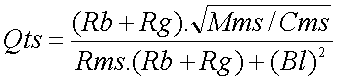 e coefficient d'amortissement aussi appelé facteur de surtension trouve sa définition dans la théorie de l'automatique linéaire, au chapitre des systèmes du second ordre, ce qu'est en version passe-haut notre haut-parleur quand on parle de sa réponse en pression sonore. Noté "z" dans nos ouvrages français, il devient "Q" chez Thiele & Small, avec pour relation Q = 1/(2z). Q = 0,707 correspond à l'amortissement d'ordinaire optimum (http://www.brouchier.com). Les électroacousticiens détaillent coefficient mécanique Qms et coefficient électrique Qes, qui par leur moyenne redébouchent sur le coefficient total alors noté Qts. L'impédance Rg du générateur sujet à l'optimisation, pourra corriger l'amortissement sans toucher aux contraintes technologiques des haut-parleurs.