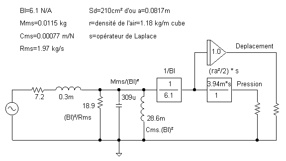 e déplacement maximum pour un haut-parleur est d'abord une dimension mécanique, différence entre hauteur de plaque de champ et longueur de bobine mobile, divisée par deux. Aller au-delà se traduit par une distorsion tendant vers l'écrêtage, ceci avant même d'atteindre les limites de la suspension. Le déplacement "x" s'affiche à la simulation en intégrant d'un point de vue mathématique la vitesse "v" issue de la force contre électromotrice "Bl.v" et suit l'allure d'un passe-bas, aussi du second ordre et aussi lié au facteur d'amortissement.